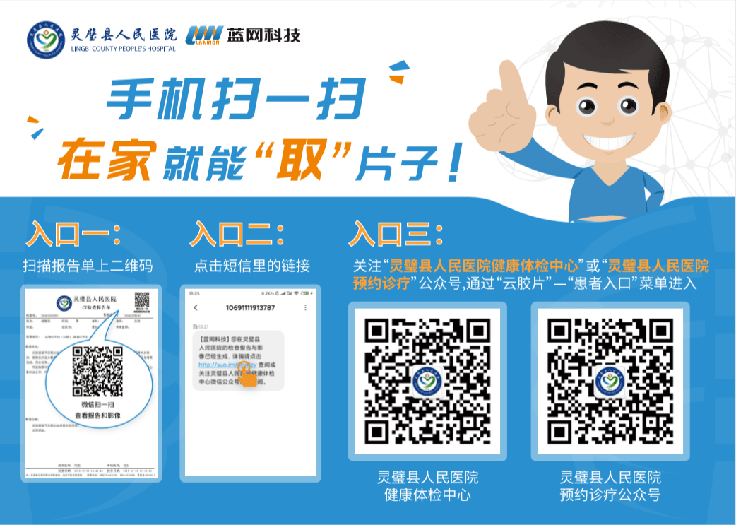 智慧医疗服务再提升—云电子胶片服务上线 为践行“互联网+医疗健康” 的新医改政策,让灵璧县百姓享有更加高效、便捷、优质的医疗与健康服务,灵璧县人民医院正式上线 “云电子胶片”服务,开启医疗影像服务“云”模式。