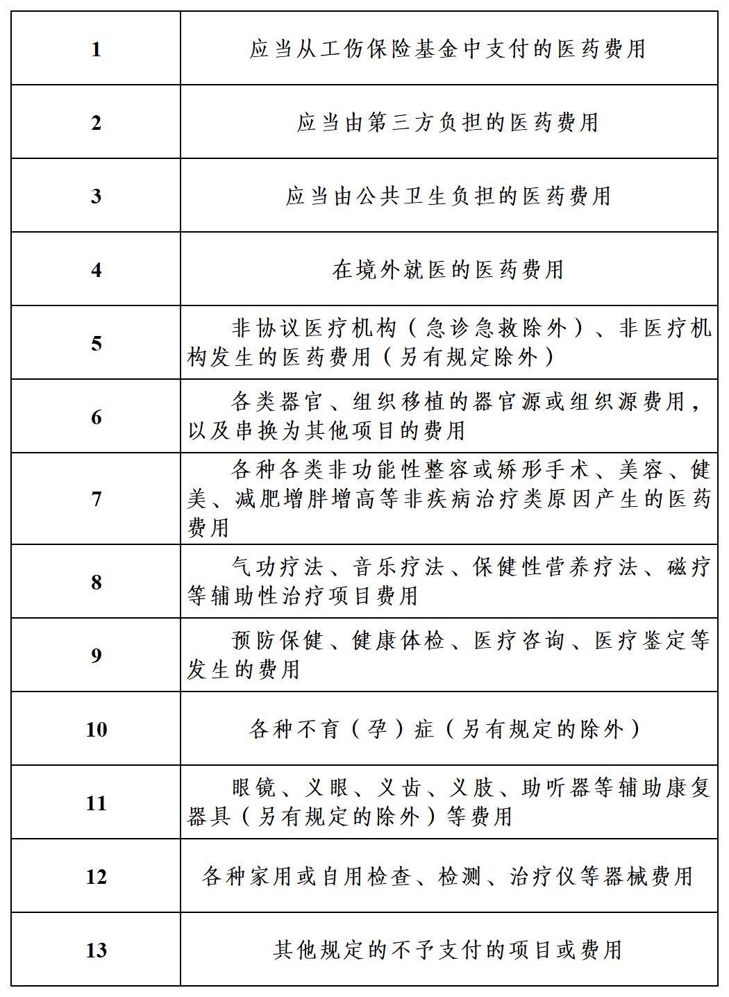 三、医疗费用不纳入居民医保基金支付范围情况
