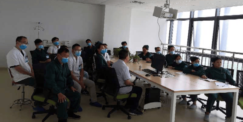 李文放教授查房后给ICU医务人员进行理论培训,针对现有危重病人病情重点讲解了急性呼吸窘迫综合征,介绍了该病的诱因、发病机制、诊断标准及治疗新进展。