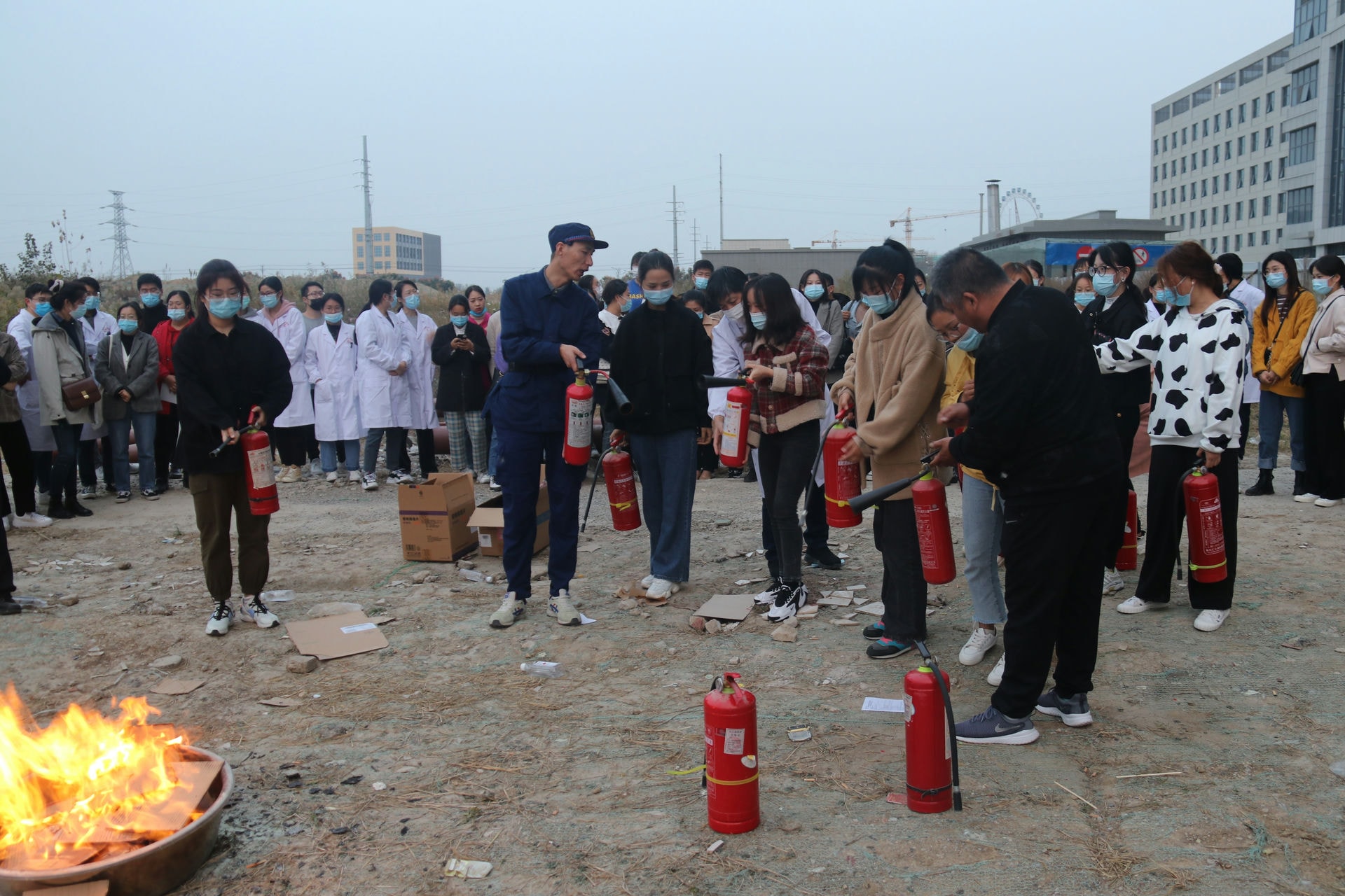 整体疏散到位后,进行了人员的清点。消防大队朱教官为职工、学生讲解常用的手提式干粉灭火器、二氧化碳灭火器的使用方法。而后参与演练的职工、学生用灭火器进行现场灭火。