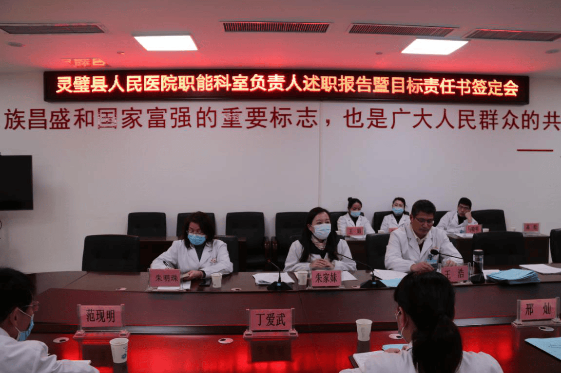 除夕前夕,继临床、医技科主任述职后,我院分两场召开全体护士长、职能科室负责人述职报告会。至此,灵璧县人民医院2020年度中层干部述职报告暨目标责任书签定会圆满结束。
