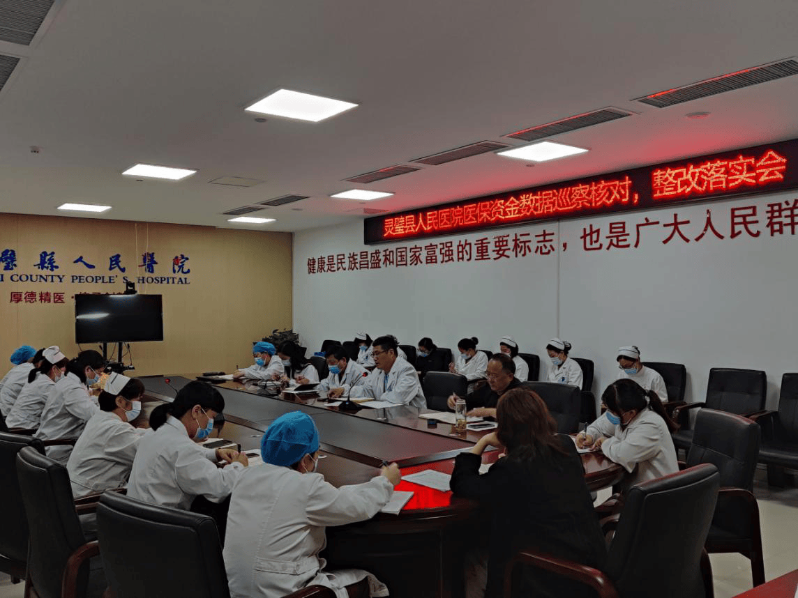 5月6日下午,灵璧县人民医院医保资金数据巡察核对暨整改落实会议在门诊四楼院委会议室召开。会议由王浩院长主持。副院长张建道、朱家妹,党委委员蒋兴良出席会议,各科室护士长参加会议。
