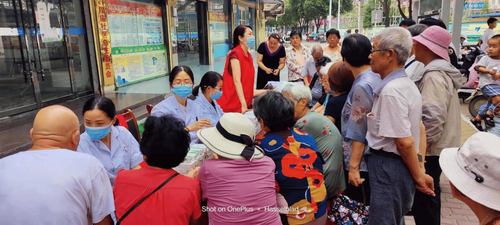 义诊现场,社区的居民们早早就来到了现场,自觉的排起长长的队伍。医护人员为前来就诊的群众量血压、心肺听诊、体格检查等,帮助群众了解自身健康状况,提醒做好相关疾病预防,提出合理的养生、保健及治疗建议。对有颈肩腰腿疼的群众现场给予推拿治疗,对于不能现场治疗的提出指导意见,提醒其及时到医院就诊。专家团队的医护人员现场发放不同种类的药品大约有500剂次,耐心的告知各类药品的功能主治和用法用量。我院的志愿者们不畏酷暑,在现场维护次序,帮助车辆摆放,向居民发往健康宣教折页。