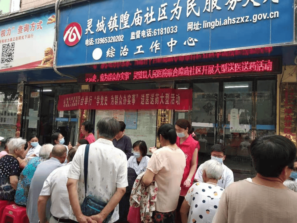 庆祝建党100周年之际,灵璧县人民医院为把党史学习教育落到实处,切实为群众办实事办好事,联合上海长征医院柳博士专家团队和蚌医二附院专家团队于2021.06.25上午08:30在隍庙社区门前举办“学党史 为群众办实事”送医送药大型义诊活动。