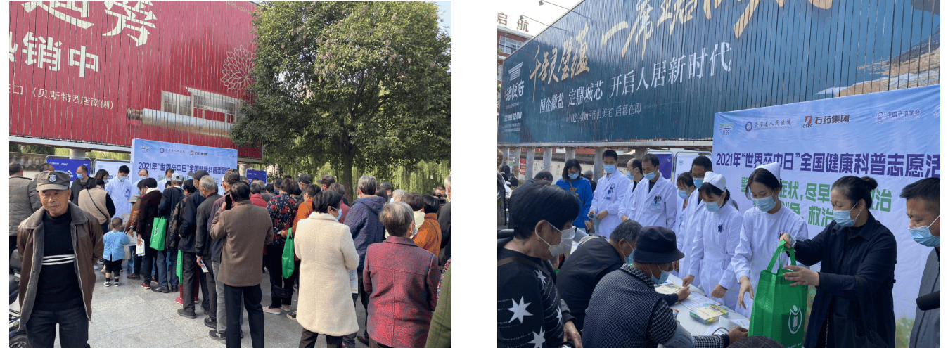 在义诊环节,主任带领医生志愿者为前来现场参与者进行血压、血糖检查,并根据结果为患者提供专业的健康指导,营造了慢性病防控人人参与、人人享有的良好氛围。医生志愿者通过宣传横幅、展架、发放健康科普单等方式,向公众普及心脑血管疾病防治知识,并进行日常保健、常见病及多发病的预防指导,向群众传达远离卒中的理念。