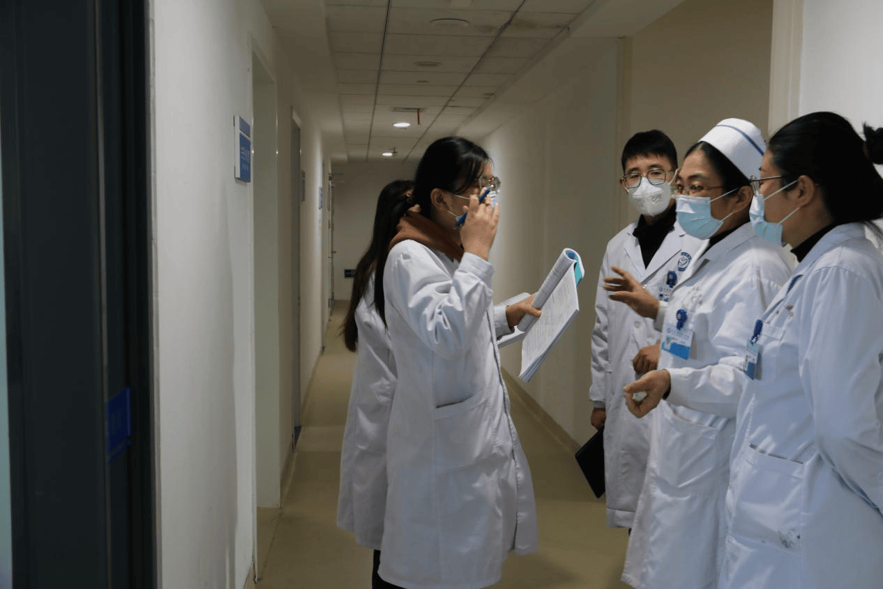 会后,蔡昶副院长带领党委办公室、院委办公室、医务科、护理部、院感科、质控科、药剂科、信息科等职能科室负责人及科室工作人员一行先后到院感办、输血科、普外科、呼吸内科开展督导检查。