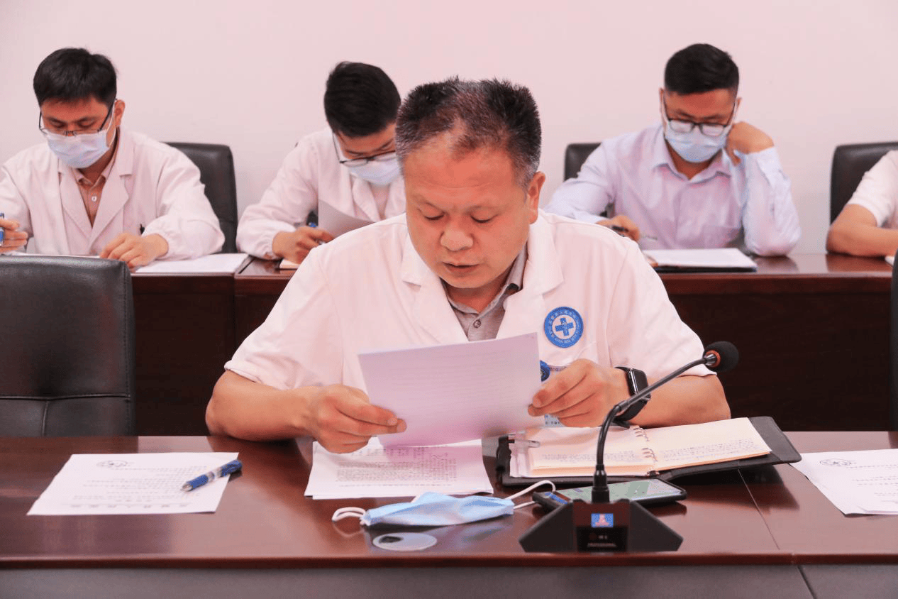 王浩强调,要严格落实门急诊首诊负责制。首诊医师发现胸痛可疑患者必须掌握第一手资料,对诊断、检查、治疗、抢救、转科等负总责。让患者在第一时间内能够得到有效的救治,坚决不能因为本科室的利益,或者本部门的利益而影响到患者救治。要积极推广多学科门诊会诊和多学科病区会诊制度。多学科会诊制度更要在胸痛中心凸显的淋漓尽致,让胸痛患者能够得到最有效的救治。要及时书写会诊记录,把工作做实做细,不出任何差错。要增强责任感、使命感。明确建设胸痛中心的目的就是要让全县130万人民的胸痛疾病,在家门口就能够得到最及时、最有效、最好的医疗救治服务。要按照时间节点,认真高效及时准确完整的上传信息,力争今年底通过胸痛中心建设认证,为全县人民群众的健康保驾护航,为健康灵璧作出更大的贡献。