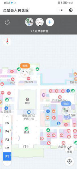 院内导航不仅有导航功能,还有位置共享功能,如果患者和家属不在同一位置,此功能可以以最快的速度找到对方。
