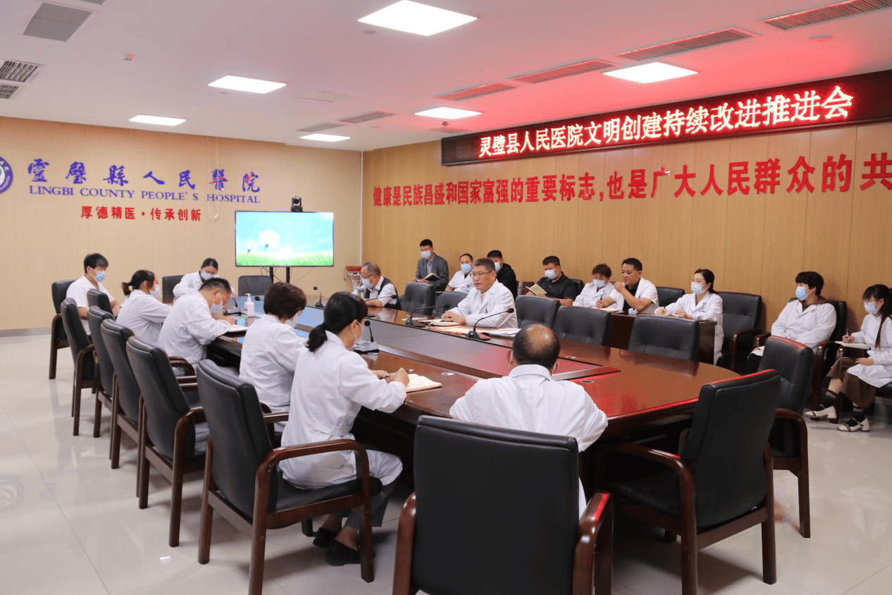 9月23日,灵璧县人民医院召开创建省级文明城市持续改进推进会,传达学习灵璧县创建省级文明城市相关会议精神,通报我院创建省级文明城市进展情况,再次详细解读医院内部涉创工作内容。王浩院长主持会议。纪委书记蒋兴良、副院长胡正宽出席会议。各职能科室负责人,物业、安保、导医等第三方负责人参加会议。