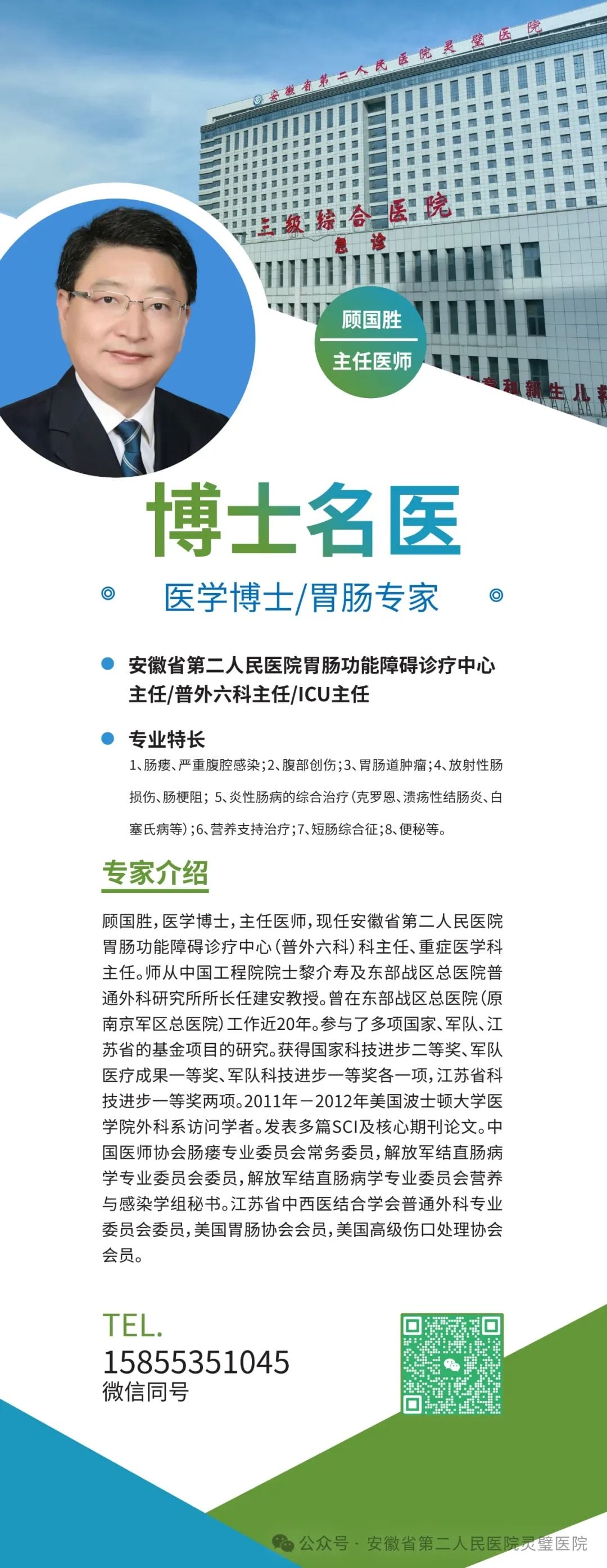 【博士名医】安徽省第二人民医院胃肠功能障碍诊疗中心 主任医师 顾国胜