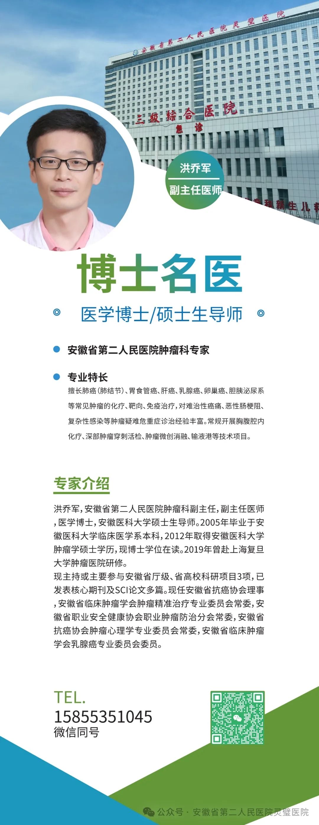【博士名医】安徽省第二人民医院肿瘤科 副主任医师 洪乔军
