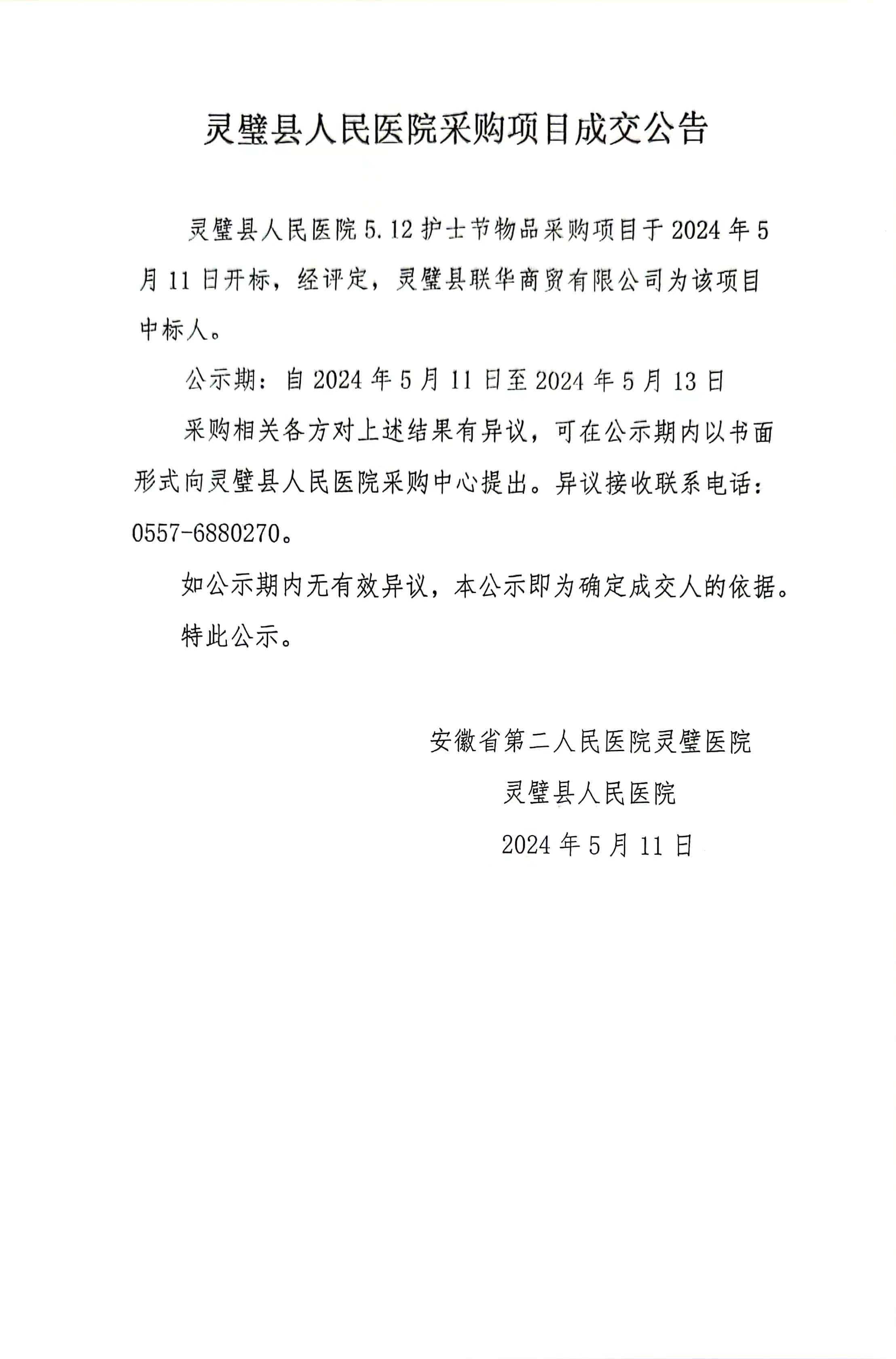 灵璧县人民医院采购项目成交公告