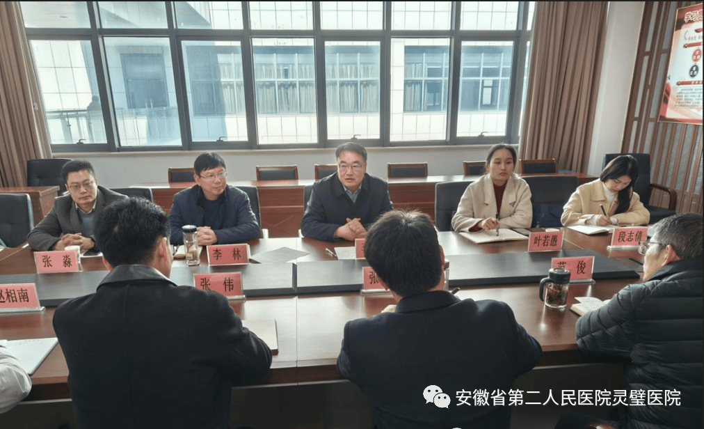 11月14日上午,宿州市直机关工委副书记、二级调研员李林和市卫健委党组成员、副主任李斌等一行莅临灵璧县人民医院调研指导党建工作。县直机关工委书记、县人民医院党委书记张浩,县卫健委党组书记、主任张伟等陪同调研。 座谈会上,张浩简要介绍了医院高质量发展情况,重点就医院党建工作落实情况进行了详细汇报。他表示,医院党委通过全面落实党委领导下的院长负责制,充分发挥把方向、管大局、作决策、促改革、保落实的领导核心作用,扎实推进党建业务深度融合等一系列实实在在的举措,推动了医院高质量发展,为将医院打造成为皖北地区一流三级医院提供了不竭动力。 张伟围绕灵璧县卫生健康行业党建工作重点及对公立医院党建工作指导作了介绍。他表示县卫健委行业党建工作始终坚持深入贯彻国家和省、市、县委关于卫生健康行业党建工作决策部署,全面推动公立医院党建工作重点任务落实,持续以高质量党建引领卫生健康事业高质量发展。 李斌指出,医院要深刻领会和贯彻落实好党的二十大精神,制定切实可行的解决措施,针对党建工作目前存在的不足之处及时查缺补漏、整改到位;要以党的建设引领医院全面发展,秉持着党建与业务共进步的意识和理念,在提升基层党组织凝聚力、战斗力的同时,加强现代医院管理,发挥党员领导干部先锋旗帜作用,带动全体职工发挥主观能动性,高效助推医院高质量发展;更加重视意识形态工作和党风廉政工作,要压实压紧责任,确保党管意识形态工作要求落到实处,常态化开展警示教育活动,时刻做到严守纪律规矩,自觉筑牢思想防线。 李林充分肯定了医院党建工作成效,同时表示对公立医院党的建设期望很高,并对医院党建工作提出了指导意见:一是加强公立医院党的领导,全面落实公立医院党委领导下的院长负责制,着力提升现代医院管理水平。二是提高政治站位,深入理解习近平新时代中国特色社会主义思想的核心要义和精神实质,切实奠定党员干部推动高质量发展的共同思想基础。三是加强基层组织建设,坚持把党建工作与医疗业务工作同研究、同部署、同落实,坚决落实党建工作各项制度,以党的建设保障卫生健康事业高质量发展。