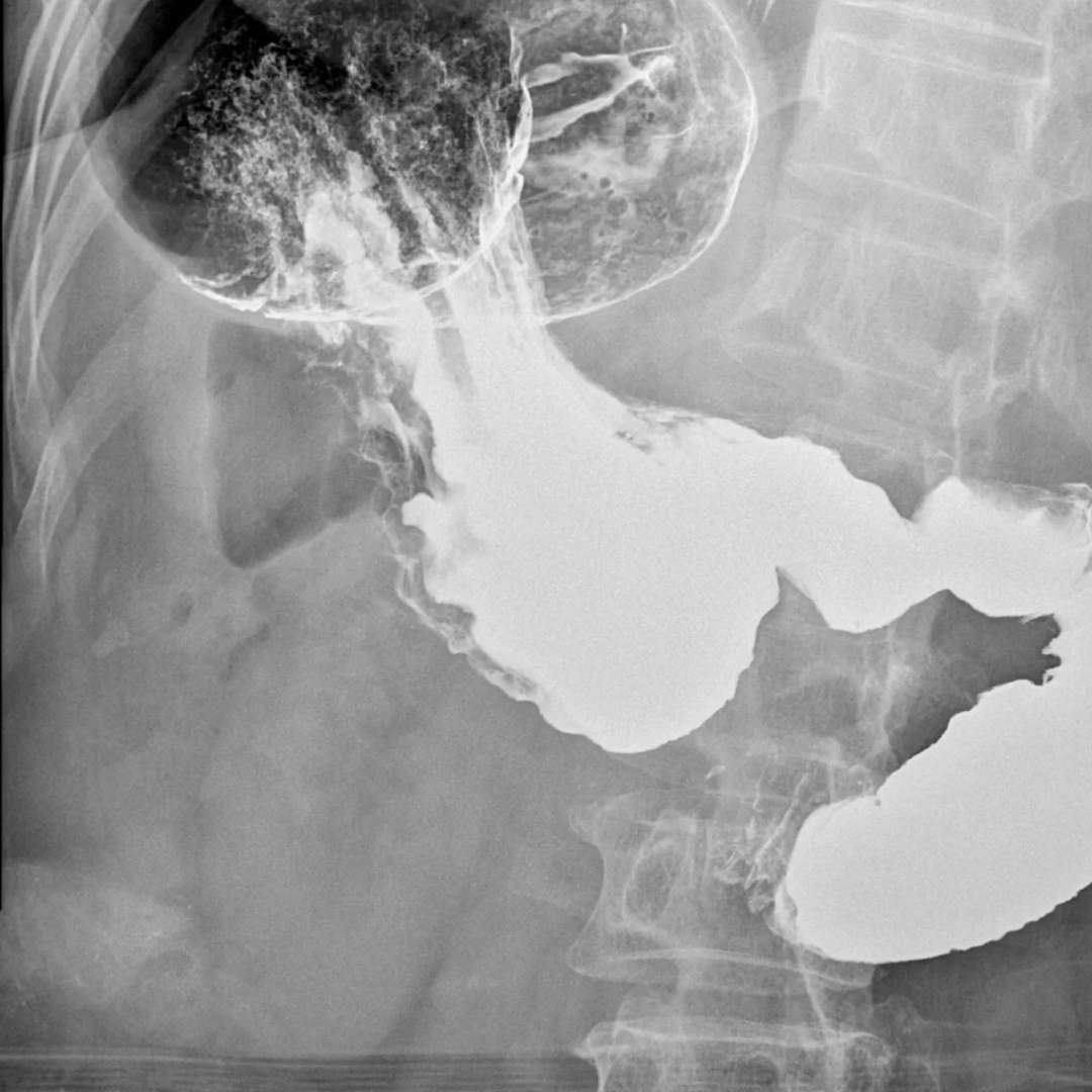 患者女性,58岁,因“腹胀、呕吐,消瘦半年”入院。患者半年前无诱因情况下,出现饭后腹胀,半小时至一小时左右出现呕吐,呕吐后腹胀感明显好转,呕吐物为胃内容物。半流质少量进食,呕吐症状略好转,大小便正常。半年体重下降20Kg。