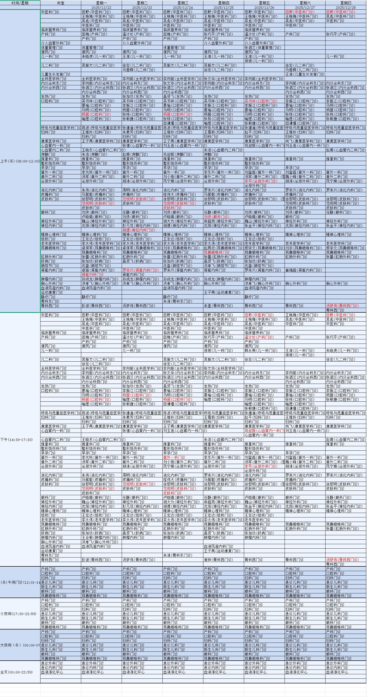 门诊排班
