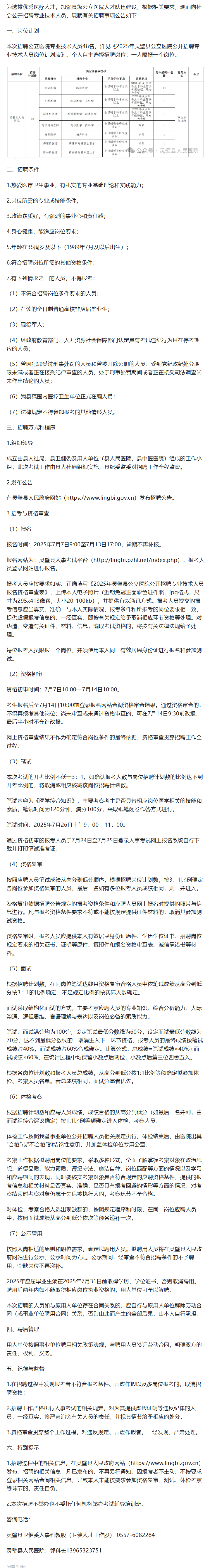 灵璧县人民医院2025年公开招聘专业技术人员公告