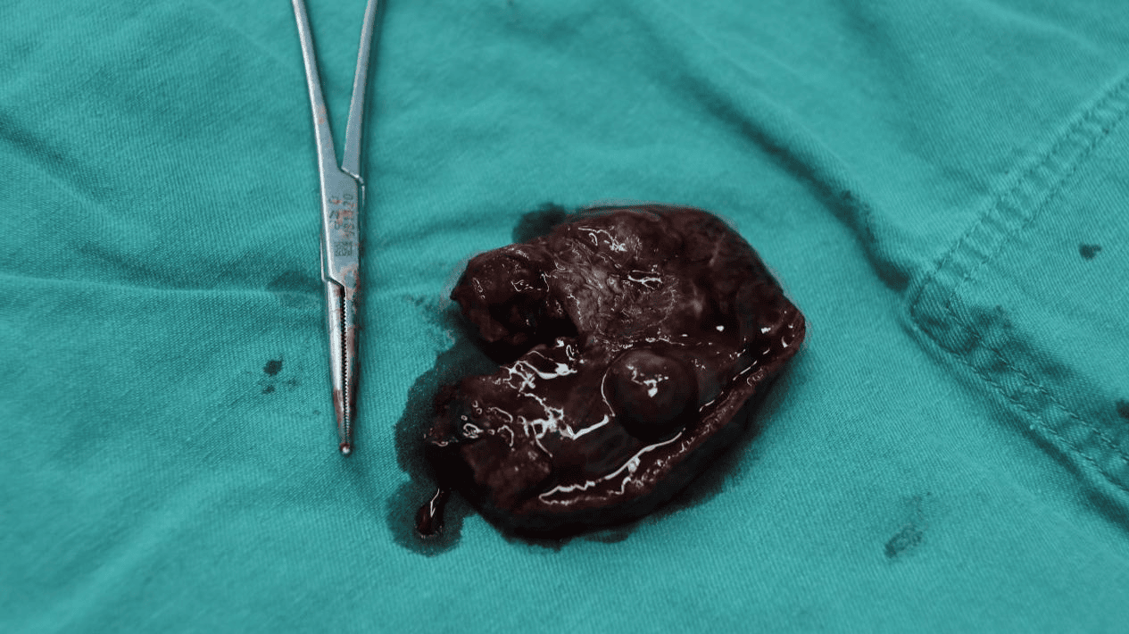 经过患者和家属同意,完善术前准备后,在曹葆强院长的指导下,普外三科团队在麻醉科及手术室的共同配合下,成功开展首例腹腔镜下左肝叶切除术,在不损伤右侧肝叶的情况下,切除直径近7cm大血管瘤。术中可见肝血管瘤与左侧膈肌黏连,腔镜下完整剥离瘤体,手术顺利,出血少,术后病人恢复快,第二天即下床自主活动