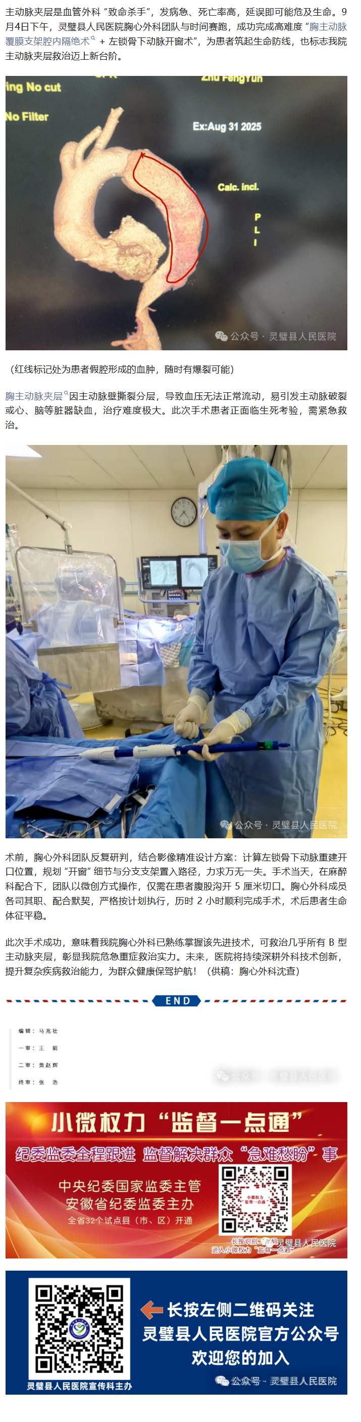 争分夺秒 “开窗”!灵璧县人民医院成功完成复杂主动脉夹层手术