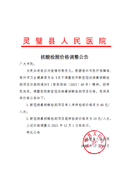 核酸检测价格调整公告
