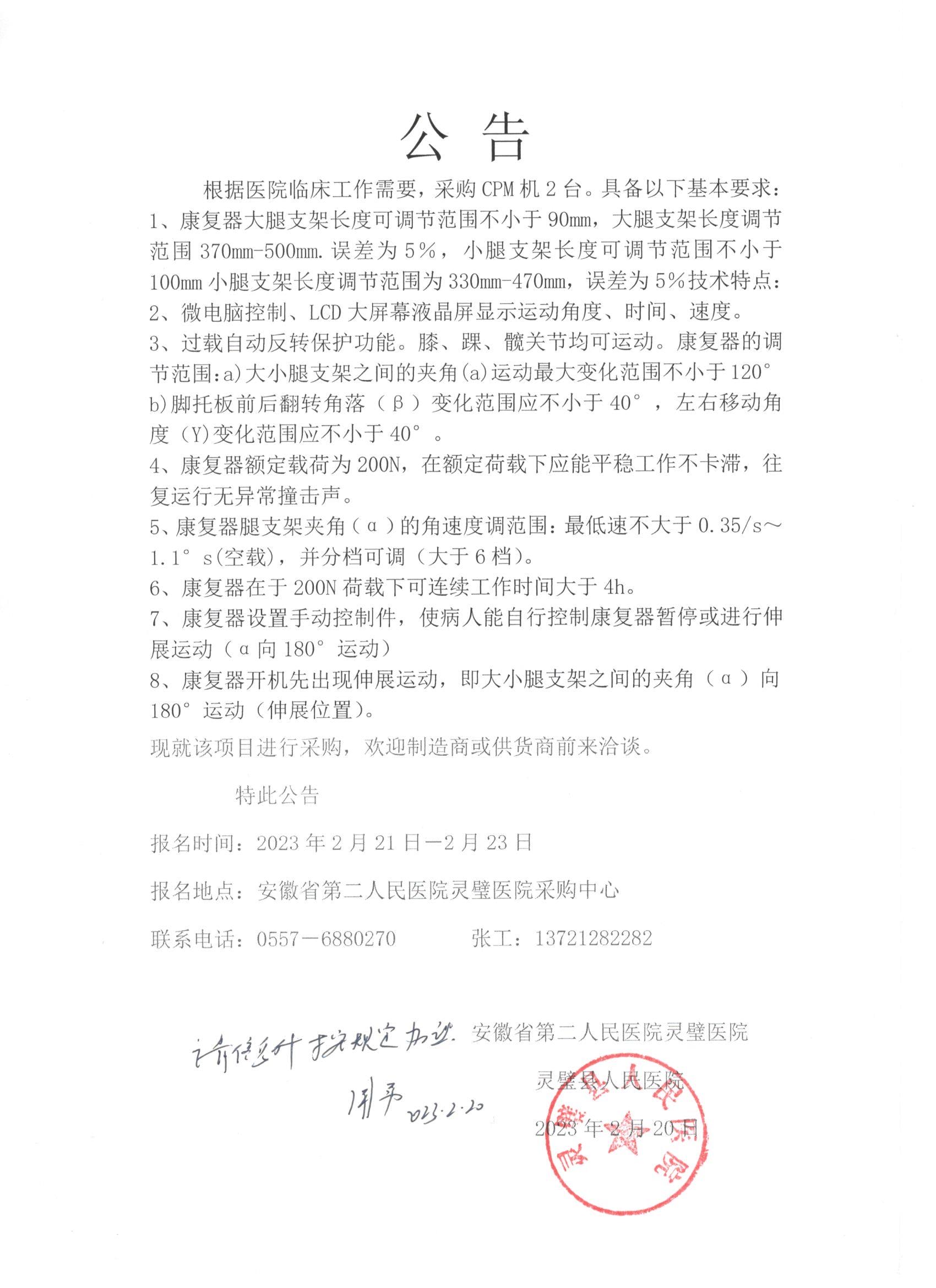 医疗设备采购公告