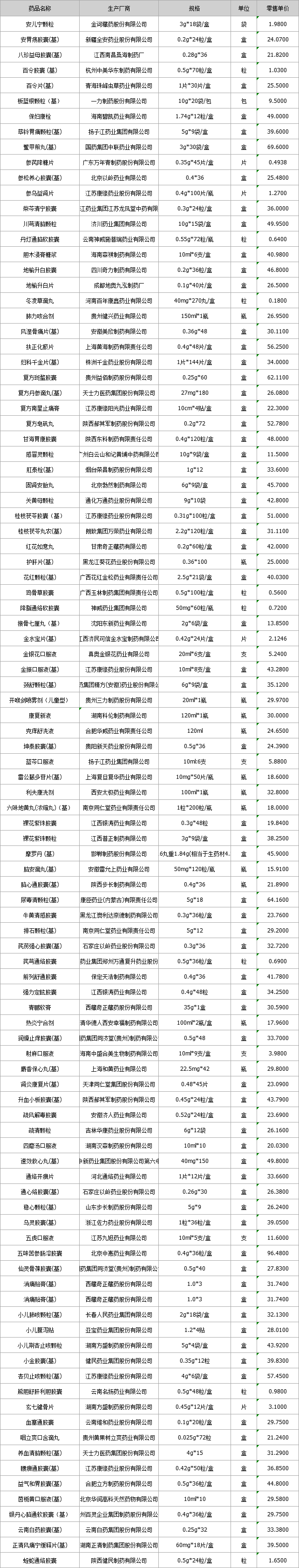 安徽省第二人民医院灵璧医院中成药品规及价格表