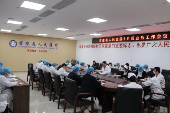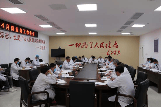 4月13日下午,王浩院长主持召开灵璧县人民医院4月份业务工作会议,学习传达国务院应对新型冠状病毒肺炎疫情联防联控机制综合组《关于进一步巩固成果提高医疗机构新冠肺炎防控和救治能力的通知》和《宿州市医疗质量管理提升专项活动实施方案》等文件精神,安排部署下一阶段工作。临床、医技科室主任、护士长,院办、设备科、药剂科、门诊部、医共体、价格办主任,信息科互联网医院、网上预约项目负责人参加会议。