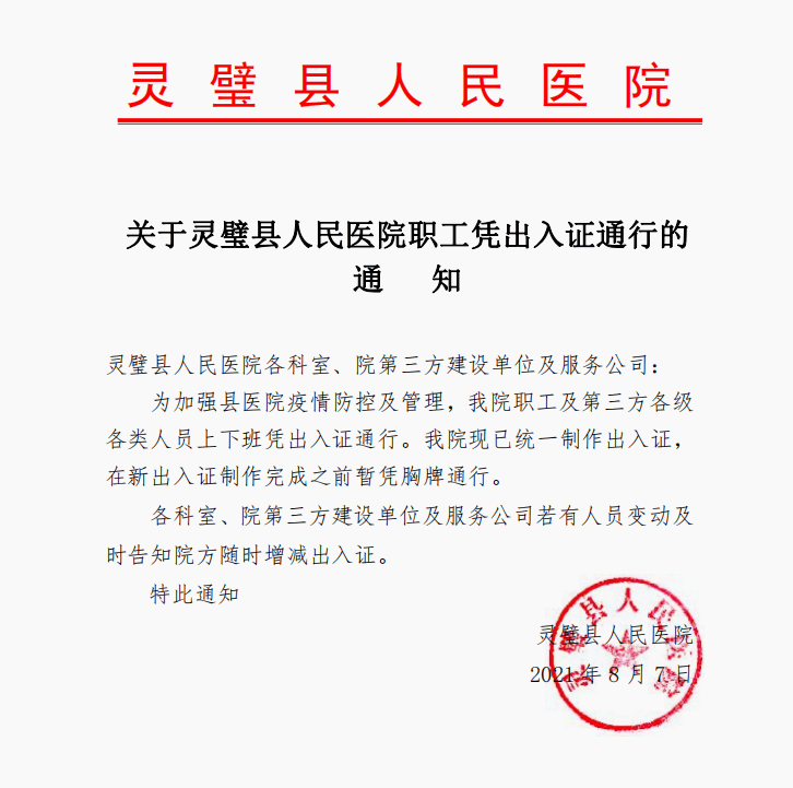 下一篇:关于灵璧县人民医院加强疫情防控的紧急通知
