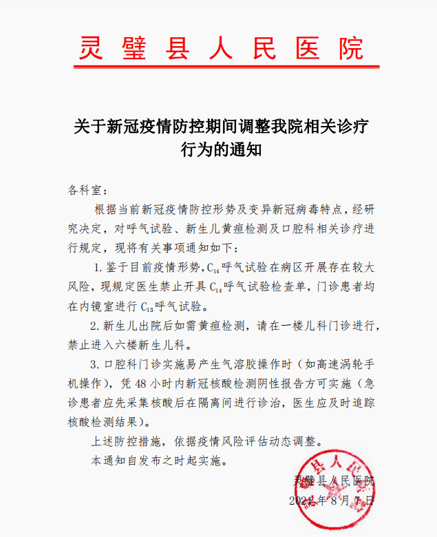 关于新冠疫情防控期间调整我院相关诊疗行为的通知