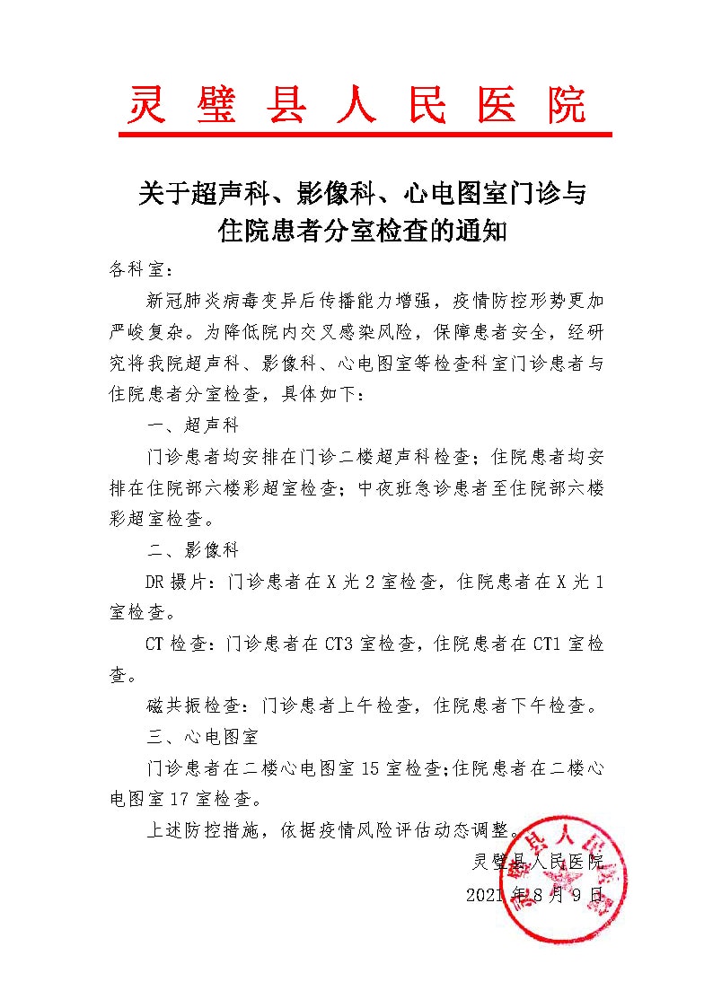 关于超声科、影像科、心电图室门诊与住院患者分室检查的通知