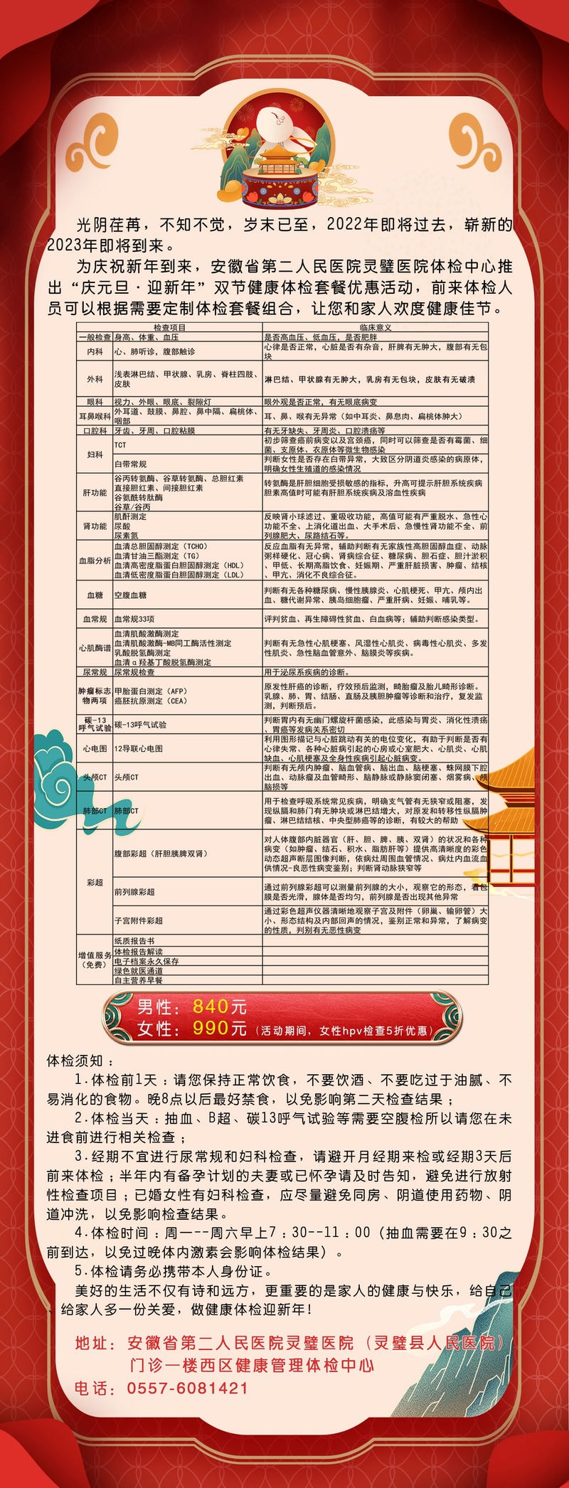 【“庆元旦·迎新年”】安徽省第二人民医院灵璧医院体检中心推出双节健康体检套餐优惠活动!