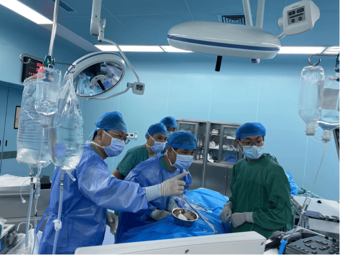 图为安徽省第二人民医院专家与我院专家联合为患者实施微创手术