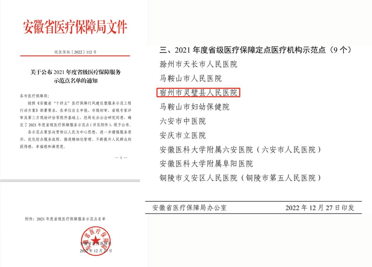 日前,安徽省医疗保障局公布的《2021年度省级医疗保障服务示范点名单》,我院荣获“省级医疗保障定点医疗机构示范点”,是全市唯一一家通过省级示范点验收的医疗机构。