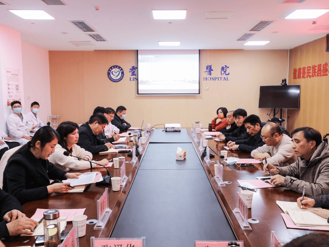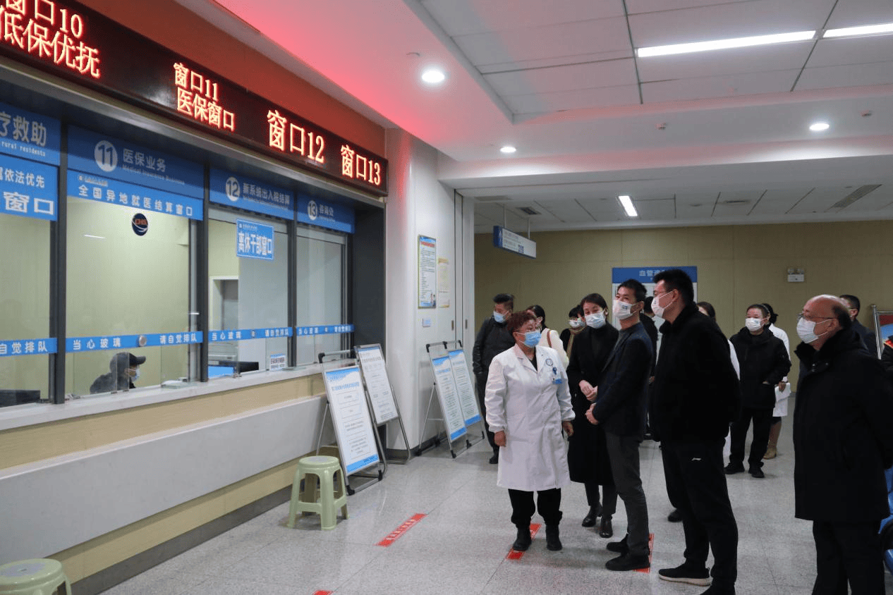 图为九江市医保局来我院调研交流医保服务管理和按病种分值付费(DIP)支付方式改革工作