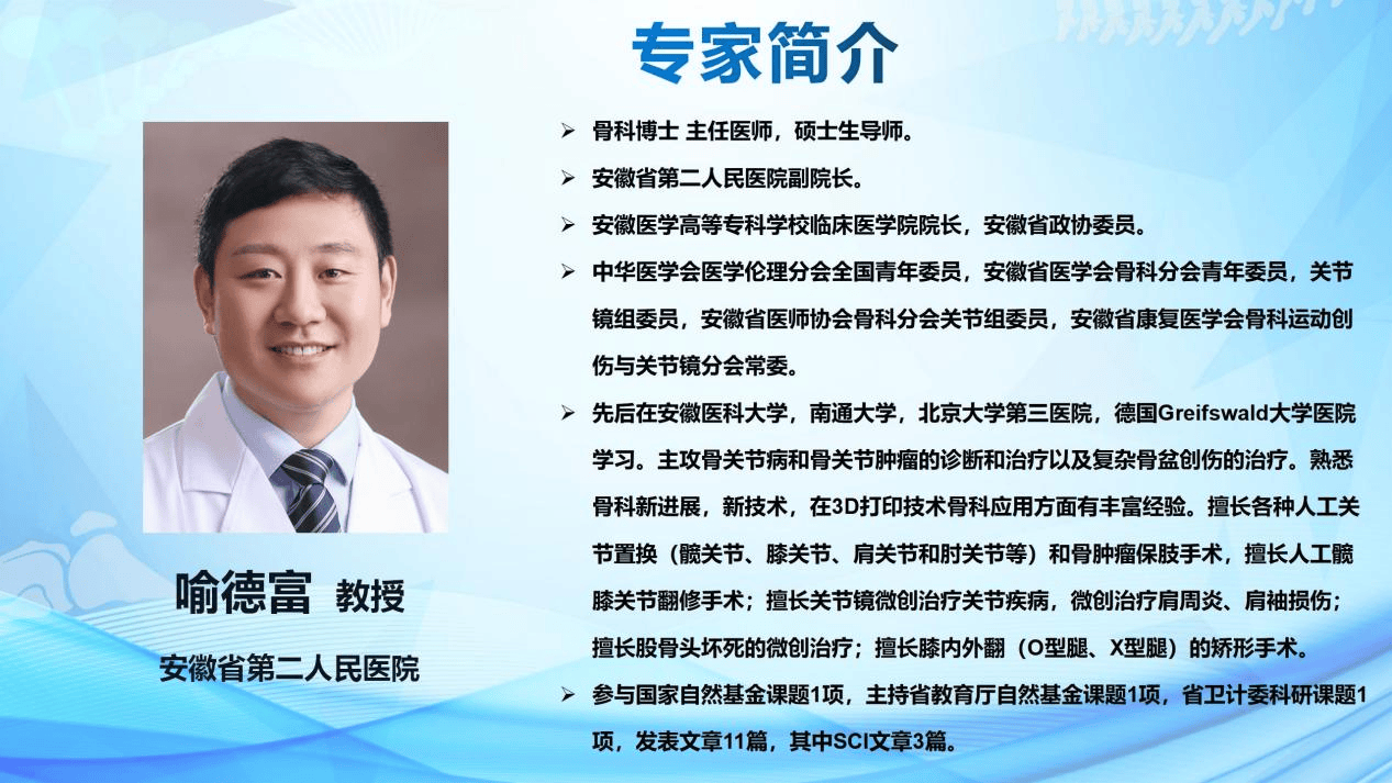 近日,安徽省第二人民医院副院长、安徽省知名关节外科专家喻德富主刀,带领我院骨科西区医生团队共同完成了四台肩、膝关节手术。