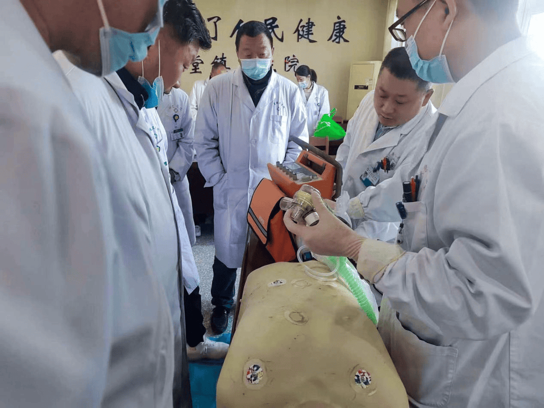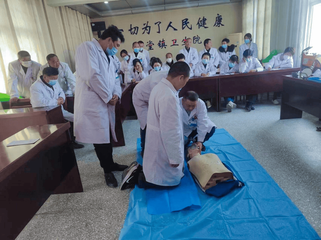 为提升我院紧密型医共体镇卫生院院前急救规范化水平,提高急诊救护能力,日前,医共体主任王娟联系组织急诊科主任张龙星、护士长王桂芳等一行赴禅堂镇卫生院开展急诊急救技能培训。