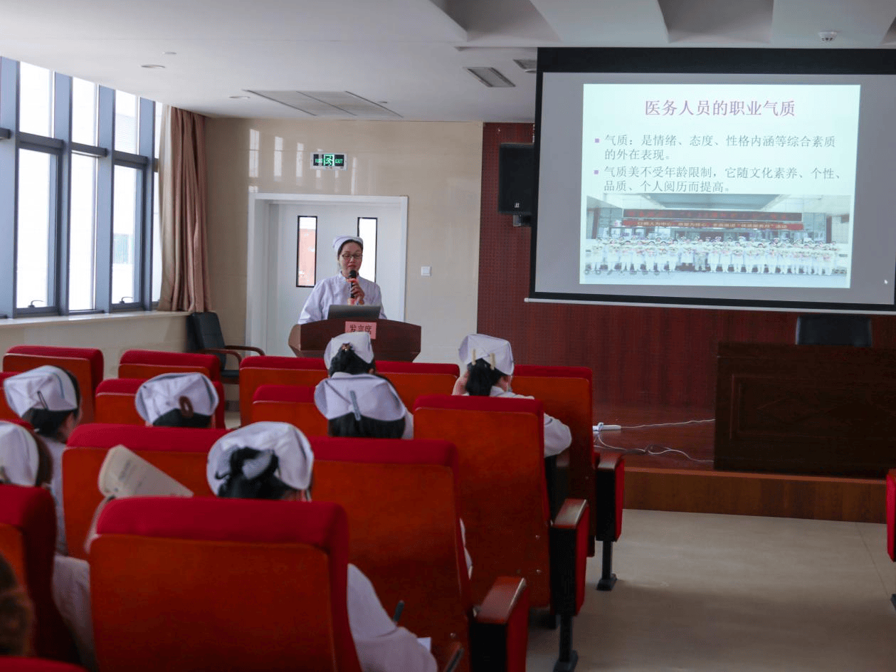 本次培训由眼科护士长高雁主讲,主要围绕护士礼仪要求、护士的仪表与行为举止、护士的非语言行为、护理岗位文明用语和忌语四个方面,以理论讲解、情景介绍、现场互动的课程形式进行培训。