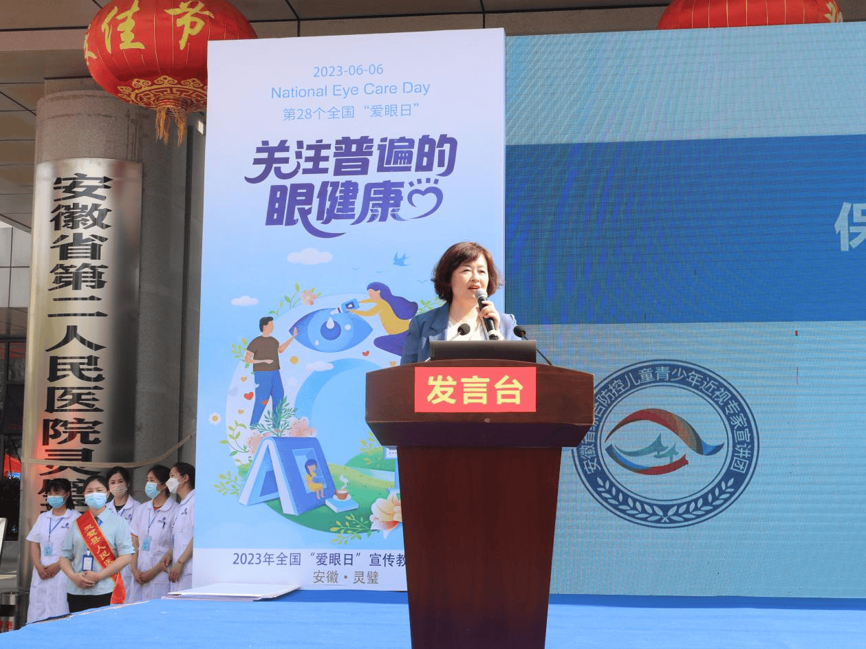 2023年6月6日是第 28 个全国“爱眼日”,主题是关注普遍的眼健康,重点关注注儿童青少年、老年人两个重点人群,聚焦近视等屈光不正、白内障、眼底病、青光眼、角膜盲等重点眼病。6月3日上午,灵璧县第28个全国“爱眼日”宣传教育周活动在我院隆重举行,曹葆强院长主持活动。