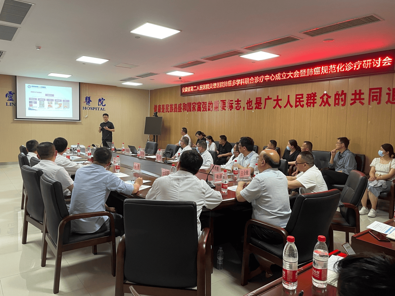 6月14日,安徽省第二人民医院灵璧医院肺癌多学科联合诊疗中心成立大会暨肺癌规范化诊疗研讨会在门诊四楼小会议室召开。副院长张泽华出席会议。安徽省第二人民医院肿瘤放疗科、病理科专家,我院肿瘤科、呼吸与危重症医学科、胸外科、感染性疾病科、影像科、病理科等科室负责人及医共体单位代表参加会议。