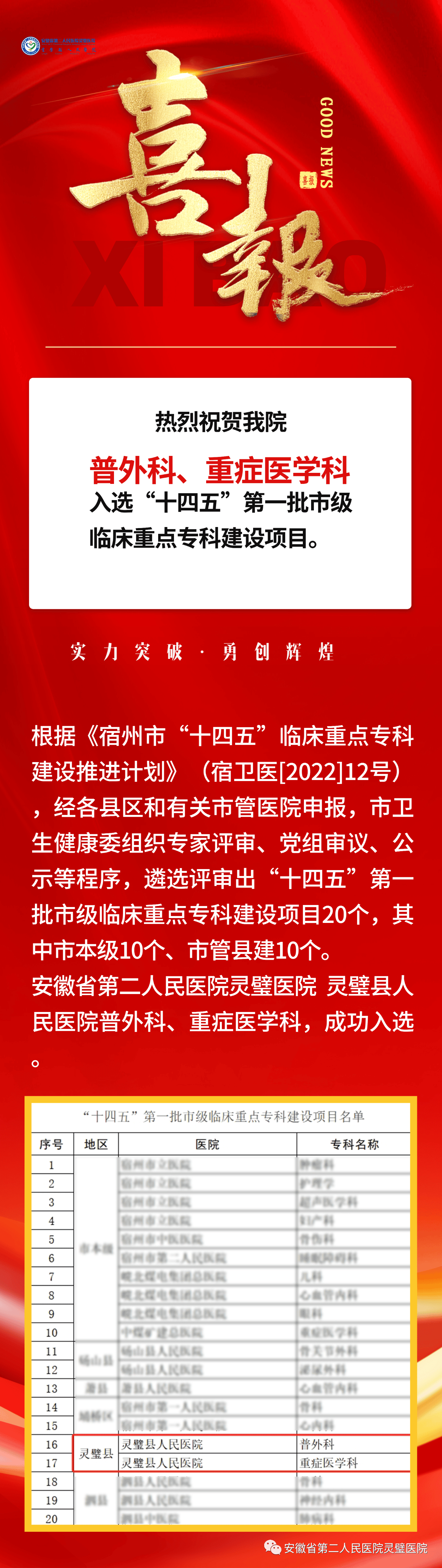 喜报|我院普外科、重症医学科入选市级临床重点专科建设项目