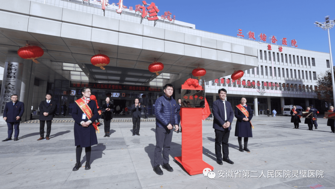 11月23日,安徽省第二人民医院灵璧医院在门诊广场举行“三级综合医院”揭牌仪式。市委常委、县委书记时志远,安徽省第二人民医院党委副书记、院长吴文涌、组织与人力资源部部长李健、心脏中心主任陈彧,县委副书记陈虎,县委常委、组织部部长高海峰等出席揭牌仪式。 时志远代表县委、县政府对省第二人民医院灵璧医院成功创建三级综合医院表示热烈祝贺。他指出,近年来,灵璧县始终把发展卫生健康事业作为重大的民生工程,加快推进健康灵璧建设,全面深化医药体制改革,不断改善医疗卫生设施,强化县级医院的龙头作用,加持推进紧密型医共体建设,不断健全多层次的医疗保障体系,全县医疗卫生综合服务能力大幅度提升,卫生健康事业发展更加坚实,自省第二人民医院托管灵璧县医院以来,省第二人民医院倾力指导,倾囊相授,通过优质的医疗资源持续下沉,先后派出一百名余医院的专家支援医院的发展,参与指导手术四百余台,形成了到灵璧医院就可以看名医的诊疗新模式。时志远强调,三级综合医院是一份荣誉,更是沉甸甸的责任,希望省第二人民医院灵璧医院的全体干部职工,抓住机遇,趁势而上,以三级综合医院揭牌为新的起点,以服务人民为最高宗旨,以改善人民群众看病就医的体验为各项工作的出发点,在改革中探索,在管理上创新,在业务上精益求精,在服务人民上心系群众,着力提升医疗服务能力和医疗服务水平,努力满足广大人民群众的健康新需求,为推进健康灵璧再立新功,再创佳绩,县委县政府也将一如既往的支持卫生健康事业的发展,坚持在政策上落实,在经费上保障,在工作上支持,全力推进健康灵璧建设,让发展成果更多的惠及人民群众。也希望省第二人民医院继续关心支持灵璧医疗卫生事业的发展,在软件、硬件建设,在人才培养、学科建设、医院管理等方面继续给予大力的支持,共同谱写灵璧医疗卫生事业发展的崭新篇章。 吴文涌在致辞中表示,此次揭牌仪式是省第二人民医院灵璧医院发展历史中一个值得铭记的日子,共同见证医院历史的蜕变,翻开医院发展的新篇章。自托管以来,在灵璧县委、县政府的大力支持下,在省二院全体员工的大力帮扶下,推动优质医疗资源的扩容,下沉,成立博士工作站、名医工作站、心脏中心,就是把灵璧县人民群众需要的高水平、高技术医疗专家派下来手把手帮扶,解决群众看病难,看病贵的问题,让群众不出灵璧县就可享受最优质的医疗服务。下一步,省二院将充分发挥省级医院的引领作用,立足灵璧县医院的现状,着力补短板,强弱项,全方面全力以赴的加大支持力度,齐心协力推动灵璧县医院在新征程上实现高质量的发展,奋力打造让百姓满意,政府放心,职工满意的三级甲等医院。