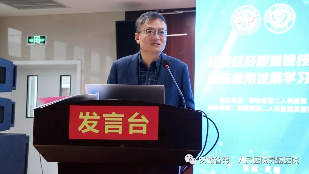 为提高胆道镜技术的临床应用水平,搭建学习交流平台,促进胆道镜技术规范化应用,2023年12月29日至30日,由安徽省第二人民医院主办的“经皮经肝胆道镜技术临床应用进展学习班”在安徽省第二人民医院灵璧医院成功举办。多位专家教授齐聚石都,围绕胆道镜技术临床应用主题,共同探讨胆道镜技术临床应用成果与发展趋势。 蚌埠医科大学第一附属医院肝胆胰外科鲁正教授,安徽医科大学第一附属医院肝胆胰外科张超副教授,安徽省第二人民医院肝胆胰外科专家袁中旭、姚佳明、许曼,安徽省第二人民医院超声医学科主任侯庆兵,皖北煤电集团总医院肝胆外科专家许明友,宿州市立医院肝胆胰外科专家张恺、骆平,宿州市第一人民医院肝胆外科专家范彬等参加本次学习班。会上,专家教授们各抒己见,学术交流精彩纷呈,为参会人员带来了一场精彩的学术盛宴。安徽省第二人民医院院长助理、教育处主任邢桂枚,灵璧县卫健委副主任朱邦跃分别致辞。安徽省第二人民医院灵璧医院院长曹葆强、副院长张泽华,宿州市立医院肝胆胰外科李明武分别主持学习班交流活动。 蚌埠医科大学第一附属医院肝胆胰外科鲁正教授作题为《腹腔镜解剖性左半肝切除手术技巧》专题报告。 安徽医科大学第一附属医院肝胆胰外科张超副教授以《经皮经肝胆道软硬镜联合取石术治疗复杂肝胆管结石》,深入探讨了复杂肝胆管结石经皮经肝胆道软硬镜联合取石术。 安徽省第二人民医院灵璧医院院长曹葆强围绕“PTOBF经皮经肝一期胆道造瘘术”从器械与设备、手术要点、并发症防治等方面进行了专题讲座。 曹葆强院长在总结中对各位专家教授表达了诚挚谢意。他表示,本次学习班为肝胆外科诊疗领域的医务人员提供了宝贵的交流学习机会,让大家对肝胆外科专业前沿技术有了更深入的了解,进一步提升了肝胆疾病诊疗技术水平。各位专家教授倾囊相授,为肝胆学科的高质量发展提供了重要的经验借鉴,今后将更多地搭建类似学习平台,与各位同道互通有无,进一步把宿州地区肝胆外科建设好,发展好。