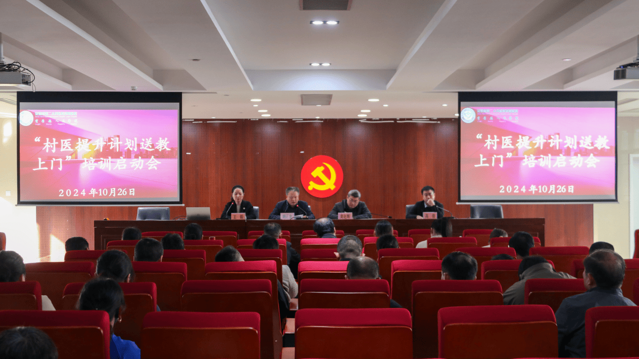10月26日,“村医提升计划送教上门”培训启动会在我院门诊四楼大会议室举行。副院长胡正宽,党委委员、党政综合办公室主任黄赵辉出席会议。各镇村医共100余人参加培训。