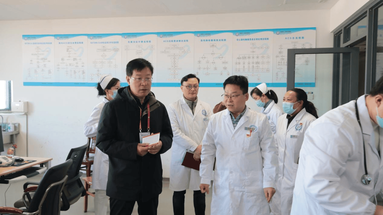 随后,专家组分别到急诊、胸痛门诊、门诊、心血管内科、CCU病房等科室,对胸痛中心运行状况开展现场核查,查看设施设备和急性胸痛病人接诊及处置流程情况,并对胸痛中心的流程改进、培训宣传等方面提出针对性建议。