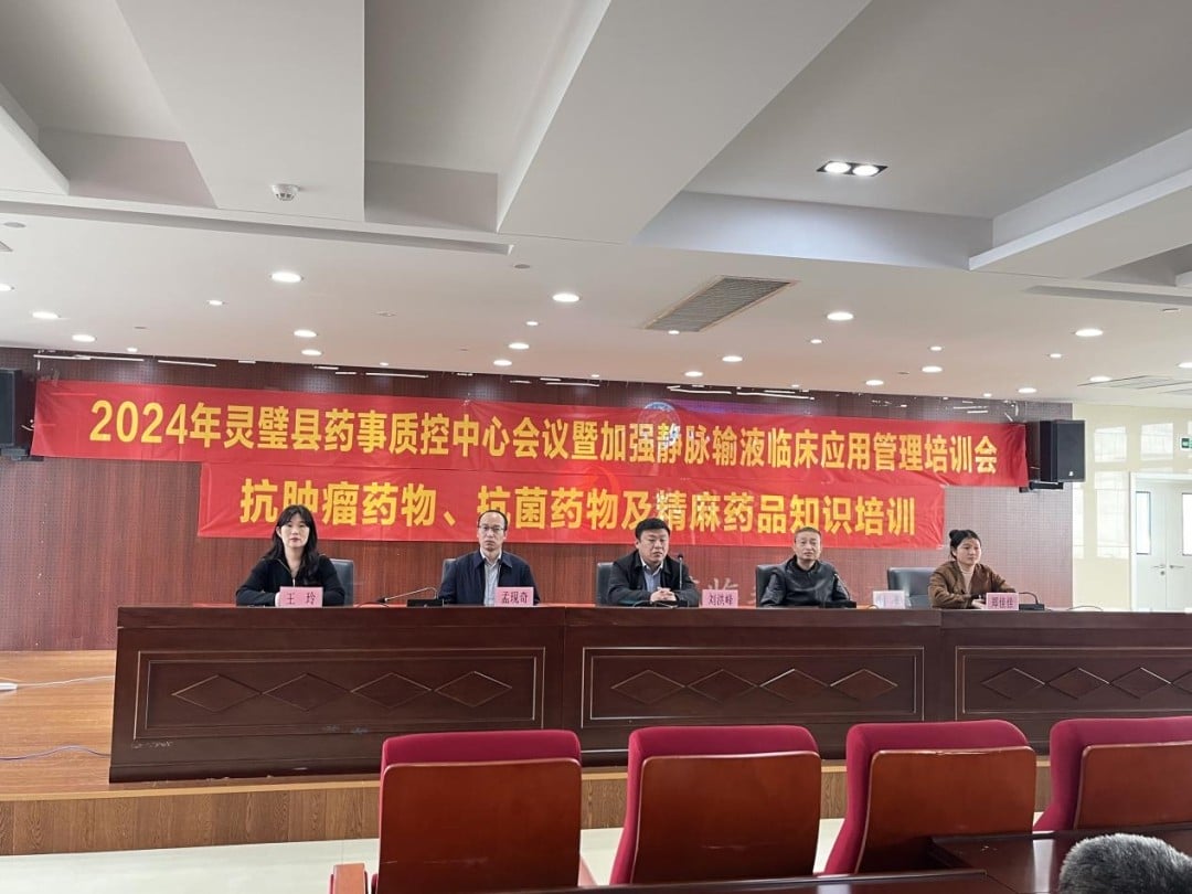 为进一步加强我县医疗机构药事质量管理体系建设,促进合理用药,提高静脉输液规范使用率,保障医疗质量与安全。“2024年灵璧县药事质控中心会议暨加强静脉输液临床应用管理培训会”于11月12日下午和11月14日下午分两期在我院门诊四楼会议室顺利举行。宿州市药事管理控制中心主任刘洪峰,我院副院长闻勇等出席会议。