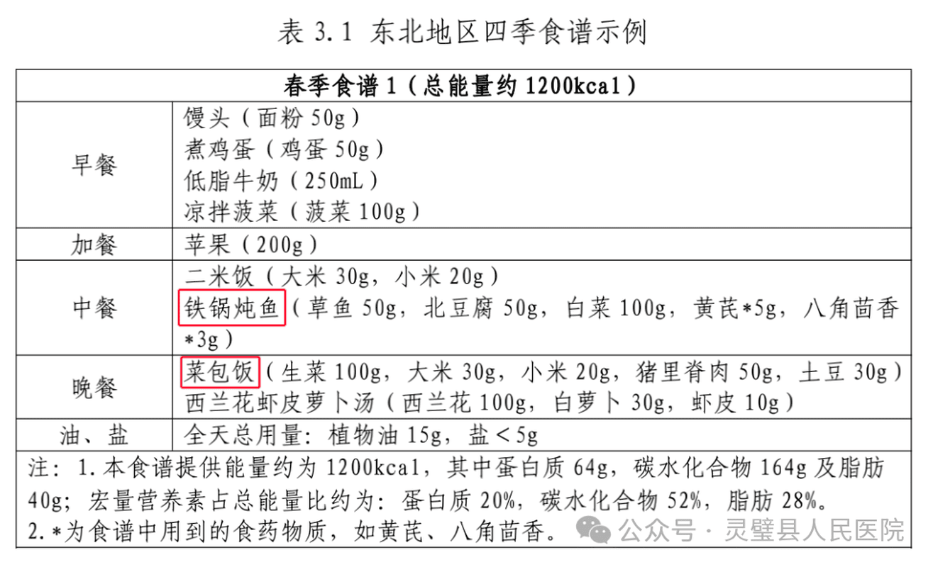 例如,东北地区的春季食谱有“铁锅炖鱼”“菜包饭”,西北地区的食谱里有“臊子面”“油泼面”。