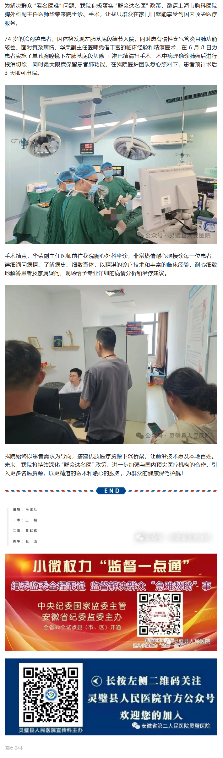 优质医疗资源下沉基层丨上海胸外科专家华荣到我院坐诊、手术