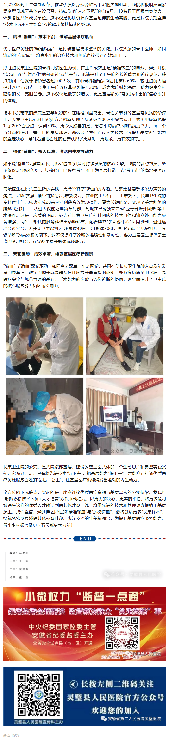 “输血”强筋骨,“造血”焕生机:我院骨干医生驻点长集卫生院,绘就紧密型县域医共体“新图景”