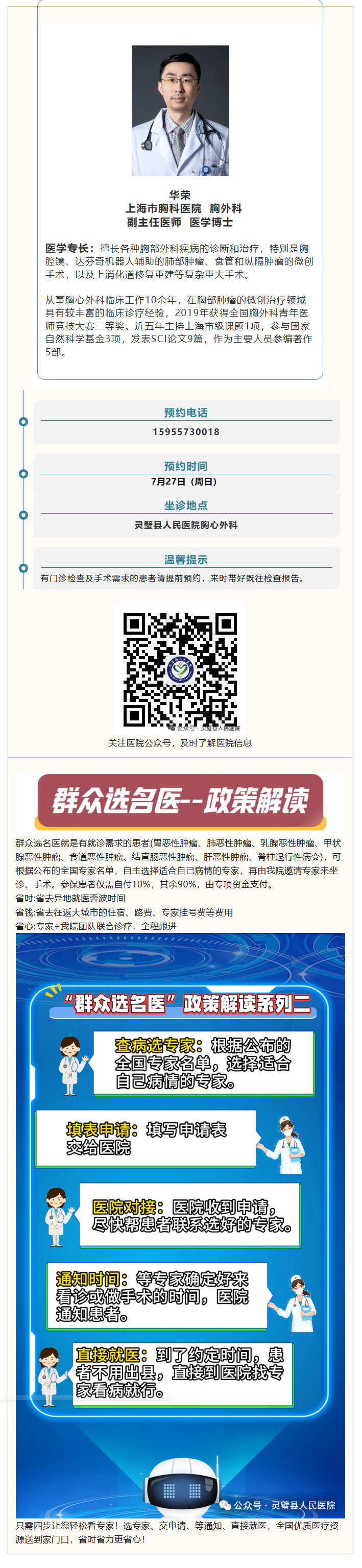 名医来到家门口,群众看病不再难!上海胸外科专家华荣来我院坐诊、手术