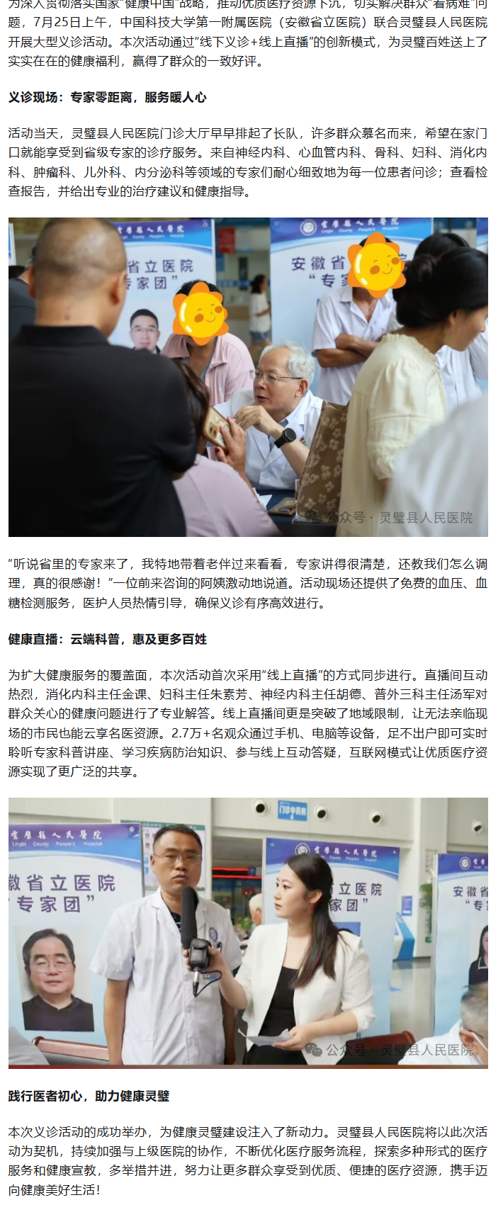 【义诊暖人心,健康惠民生】省级专家团队联合灵璧县人民医院开展大型义诊活动