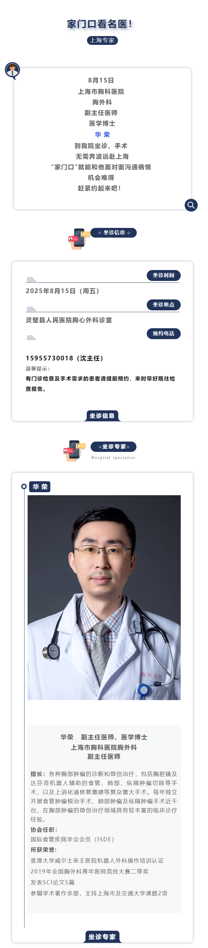 群众不动专家动!8月15日,上海市胸科医院胸外科华荣主任来我院坐诊、手术